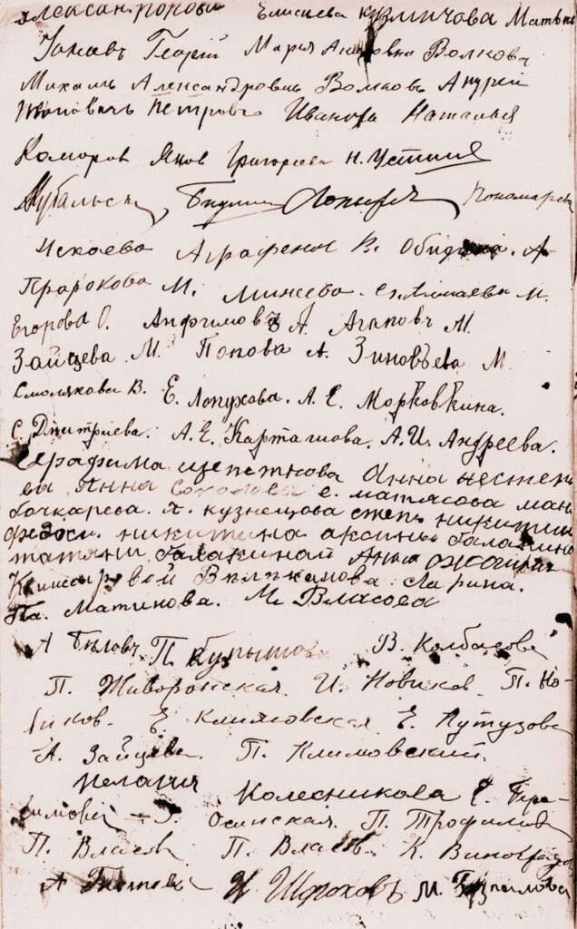 «Мы нижеподписавшиеся прихожане Серафимовской церкви покорнейше просим Ваше Преосвященство разрешить совершать Богослужения в нашем храме назначив временно священнослужителя по Вашему усмотрению».